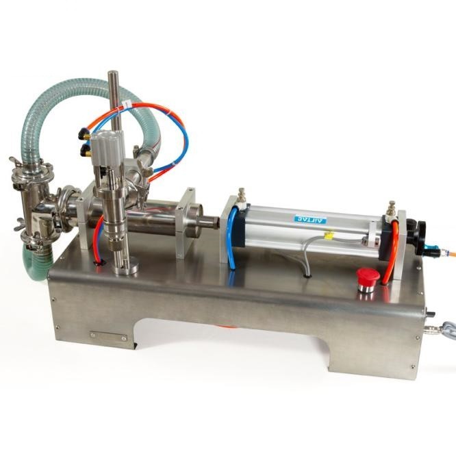 Полуавтоматическая машина для наполнения жидкостью от Sammipack, пневматическое управление, высокоточная внутренняя конструкция сердечника. система поршня и трехходового клапана, обеспечивающая быстрое, контролируемое и точное заполнение жидкостью.